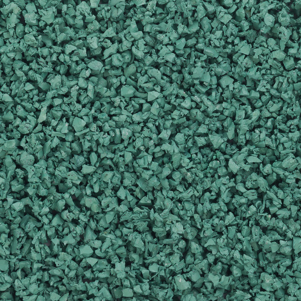 SBR-крошка мятно-зеленого цвета — это современный полимерный материал на основе каучука, долговечный, эстетичный и один из наиболее доступных по цене благодаря простой технологии производства и недорогому сырью. В его качестве выступают переработанные автомобильные покрышки, которые обретают вторую жизнь в виде покрытия для спортивных и детских площадок, пешеходных зон и велодорожек, используются для дизайна общественных пространств и создания игровых объектов. SBR-крошка прослужит не менее 10-15 лет практически без внешних изменений.
