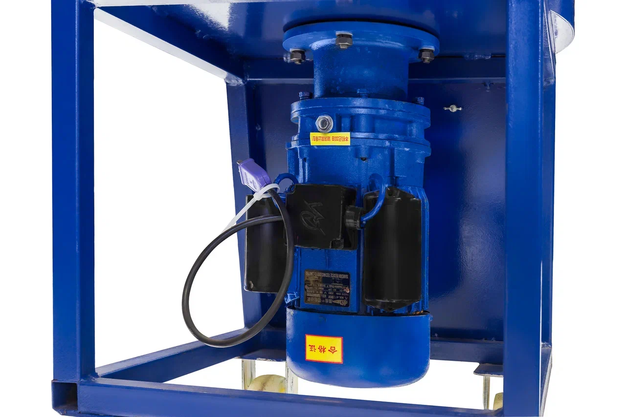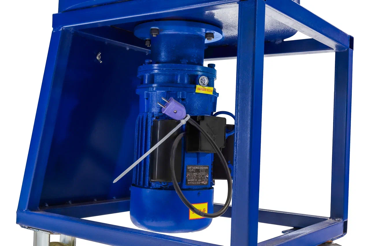 Миксер с электроприводом для производства резиновых покрытий. Перемешивает резиновую крошку, полиуретановое связующее и пигменты в однородную массу за 5 минут. Максимально допустимая разовая загрузка — 90 кг.