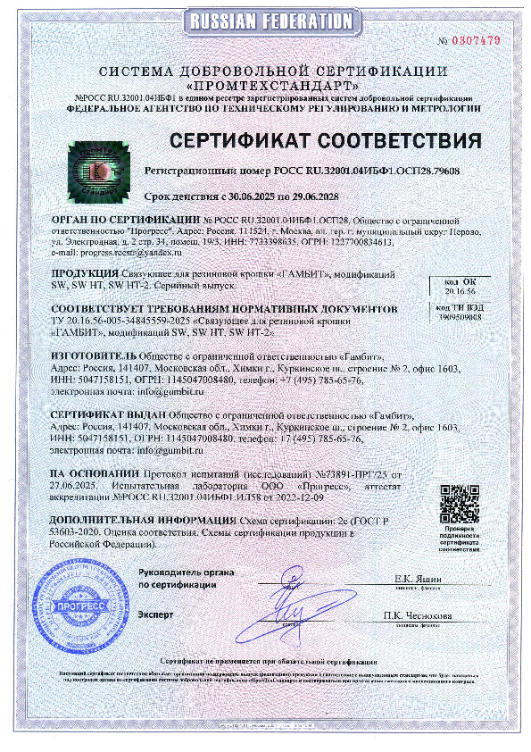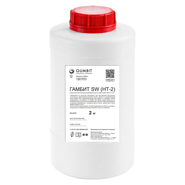 Связующее «Гамбит SW НТ» для низких температур — это полиуретановый клей, который можно использовать при температуре от 3 °C и выше. Материалу не страшна и повышенная влажность — до 90%. Даже в таких условиях клей хорошо взаимодействует с резиновой крошкой.